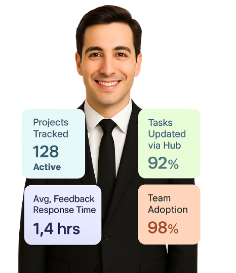 Unlike most task tools, Presto PDCA keeps things simple. Only project manager need training—everyone else contributes via a no-training-required easy-to-use input panel referred to as 'The Task Feedback Hub’. Managers structure tasks, request updates through surveys, and streamline communication using push-notifications to gather feedback from their teams.