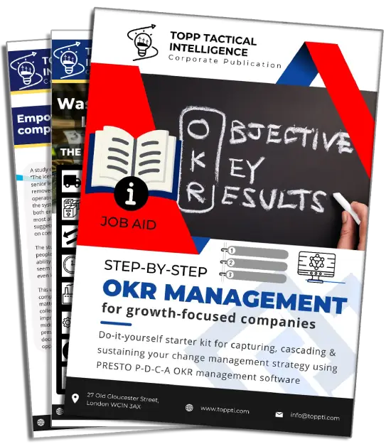 In this field guide you will learn our tried-and-true road map to launching a strategy deployment program which captures, reports and sustains the objectives and key results linked to company breakthrough goals (aka OKRs).